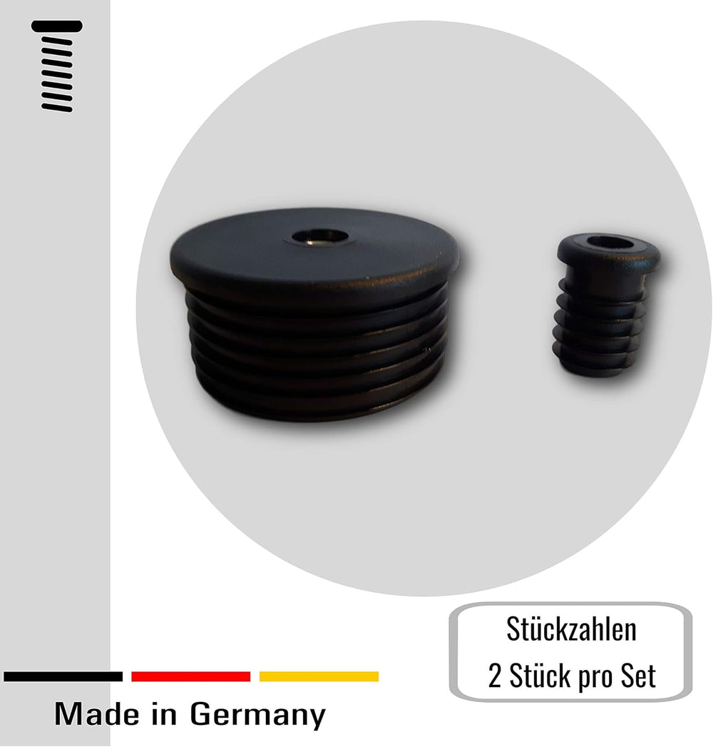 2 Gewindestopfen/Buchsen für Rundrohre von 22 bis 60 mm Durchmesser