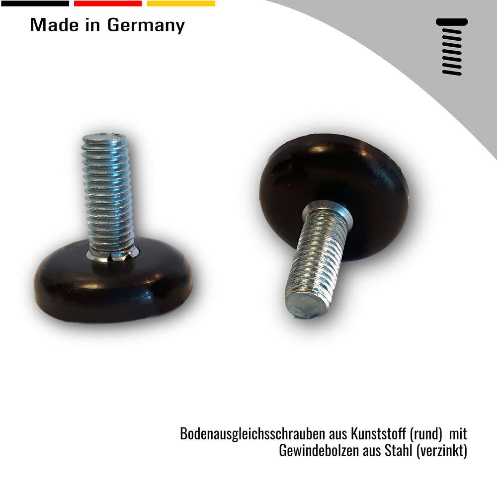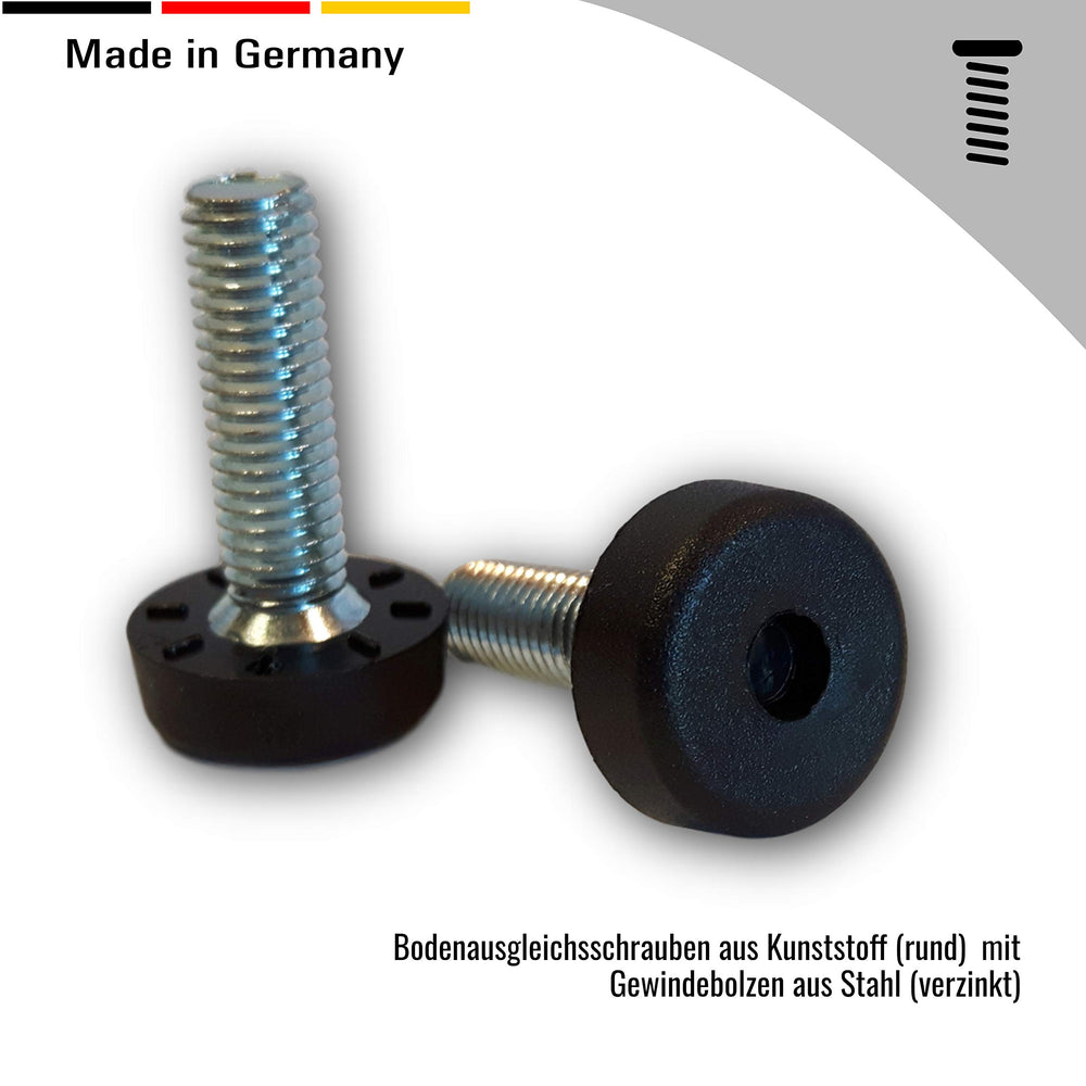 2 Bodenausgleichsschrauben Kunststoff, rund, schwarz, mit Gewindebolzen Stahl verzinkt